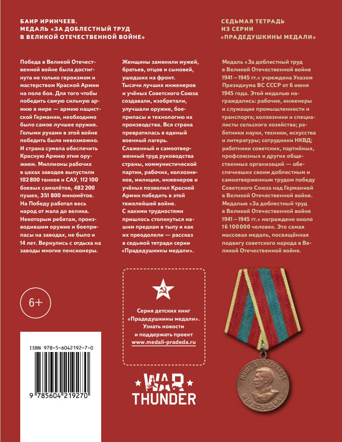 В предыдущих тетрадях мы рассказывали о подвигах, совершённых советскими воинами и партизанами на фронте и в тылу врага. Однако без хорошего оружия, без патронов и снарядов, без еды совершить эти подвиги было бы невозможно. После нападения нацистской Германии вся наша страна превратилась в один огромный военный лагерь. Победу одержали не только фронтовики и партизаны, но и простые советские люди, которые тоже вели свой бой в тылу — у станков на оборонных заводах и в колхозных полях. О медали «За доблестный труд в Великой Отечественной войне 1941– 45 гг.» наш сегодняшний рассказ.