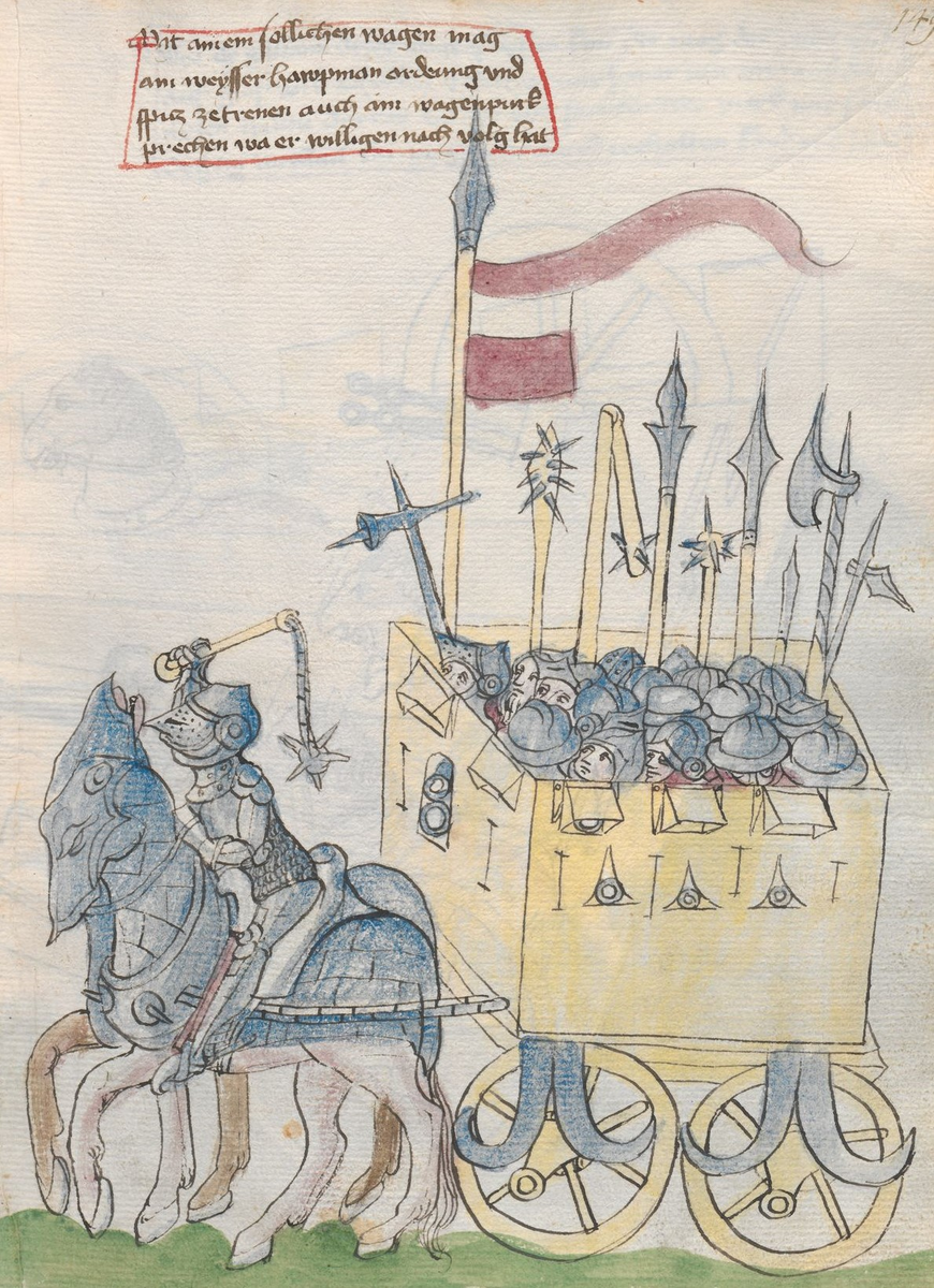 В источниках, сохранившихся от времени гуситских войн, мы можем наблюдать смешение представлений обо всех видах боевых транспортных средств разом, даже колесниц бронзового века. Нам конечно же известно, что даже в античное время применение вагенбурга признавалось логичным и правильным способом обороны. Эврипид в трагедии «Финикиянки» изображает, как одна из враждующих сторон укрывается от другой среди сцепленных телег. При Адрианополе германцы, участвовавшие в Великом Переселении Народов, также пользовались вагенбургом. Средние века не исключение - мысль использовать повозки, которые всегда имеются при любой армии одновременно и в качестве прикрытия для лагеря и для обороны в случае надобности напрашивается сама собой.
