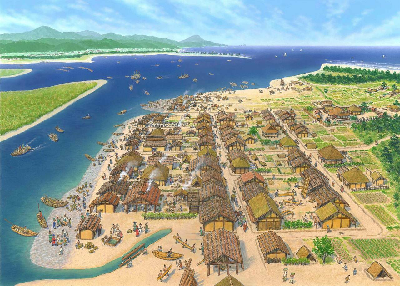 Развитие таких посёлков – их называли сюктиба-мати, или «почтовыми городами», – в эпоху Муромати началось довольно поздно. Гораздо раньше появились минато-мати, или портовые города, которые предлагали удобства для путешествий и перевозок по воде. Это были места, откуда товары из внутренних районов можно было отправлять оптом. В периоды Камакура и Муромати перевозка больших объёмов грузов по дорогам была сопряжена с трудностями, поскольку конный транспорт развивался очень медленно, а груз, который могла перевезти одна лошадь или вол, был невелик. Большинство крупных населённых пунктов, расположенных вдали от побережья, имели собственные портовые города. Для Киото это был Йодо, в Наре – Кидзу, в провинции Исэ – Оминато, а Хёго и Сакаи служили портами для океанских судов и судов, курсирующих по Внутреннему морю, как и во всех провинциях. Большинство этих портовых городов были оснащены складами и оборудованием для ремонта судов и обработки грузов, а также жильем для моряков. В таких портах обычно располагались оптовые торговцы и транспортные агенты, ведущие крупномасштабную деятельность. Согласно некоторым документам, в Йодо до 1500 года насчитывалось около тысячи зданий, его население могло составлять до 5000 человек.