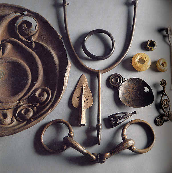 В V веке до н.э. на континенте начинается новая эпоха, связанная с культурой Латен. Названная так в честь коммуны недалеко от озера Невшатель в современной Швейцарии, Латенская культура напрямую связана с историческими кельтами, известными античным греческим и римским авторам. Именно расселение латенских кельтов достигает берегов Ирландии около 300 года до нашей эры. В это же время кельтские вожди захватывают Рим и Дельфы, доводят свои племена до Балкан и Анатолии, где основывают Галатию. Экспансия кельтского населения полностью захватывает Британские острова. Новый «захват» острова приносит с собой не только новую элиту, ремесла и уклад жизни, но и новые акценты культуры. В частности, на себя обращают внимание элементы конской сбруи, широко представленные в археологическом материале острова. На данный момент известно более сотни уздечек, и существует по крайней мере еще сотня приспособлений, включая любопытные, уникальные ирландские предметы в форме буквы Y, которые ассоциируются с конской сбруей. Часто звенья украшены элегантными криволинейными узорами или эмалевыми вставками. Очевидно, что это были ценные и дорогие предметы, многие из которых носят следы многократного ремонта. Вместе с лошадью, на остров приходит и колесный транспорт – как в виде боевых колесниц, так и в виде четырехколесных повозок для транспортировки товаров.