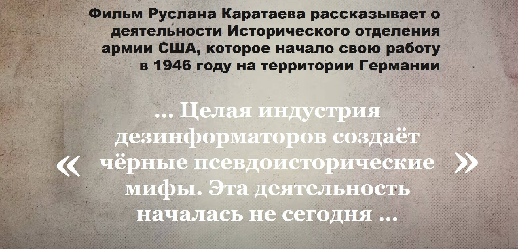 Фильм Руслана Каратаева рассказывает о деятельности Исторического отделения армии США, которое начало свою работу в 1946 году на территории Германии. Небольшая группа интеллектуалов смогла изменить сознание целого государства. Немецкие генералы потерпели поражение, но попытались взять реванш на страницах книг. За 15 лет существования проекта в нём успели поучаствовать более 700 немецких офицеров, а на свет появилось более 2,500 отдельных текстов по разным темам.