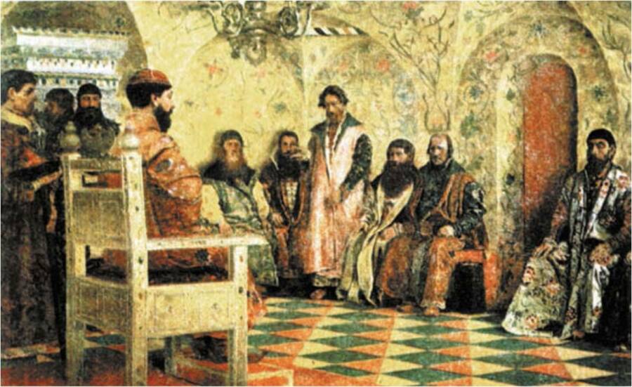 1. Какое новые и старые моменты отличали экономическую жизнь России в XVII в.? 2. Какие формы торговли развивались в XVII столетии? 3. В чем состояли особенности русской мануфактуры XVII в.? 4. Каковы были причины установления в России крепостного права? 5. На какие сословия делились служилые слои русского населения? 6. Какими сословиями было представлено тяглое население? 7. Какие еще слои присутствовали в социальной системе России? 8. Что представлял из себя вотчинный уклад и вотчинное государство в России? 9. Какие этапы развития прошла российская государственность в XVII в.? 10. Как воздействовала на Россию западноевропейское влияние? 11. В праве ли мы называть XVII столетие «веком Новшеств»?